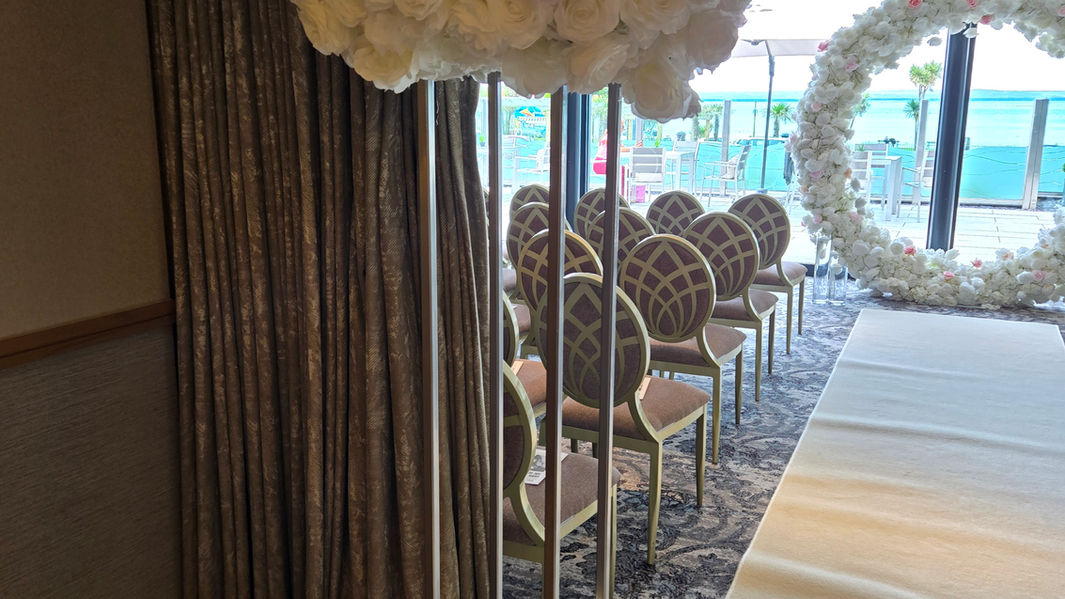 If you’re looking for elegance, subtlety and a creative twist on a traditional arch, ‘Kisses & Roses Moongate’ is perfect for your big day. A Moongate arch with luxury white flowers, giving your ceremony that finishing touch.